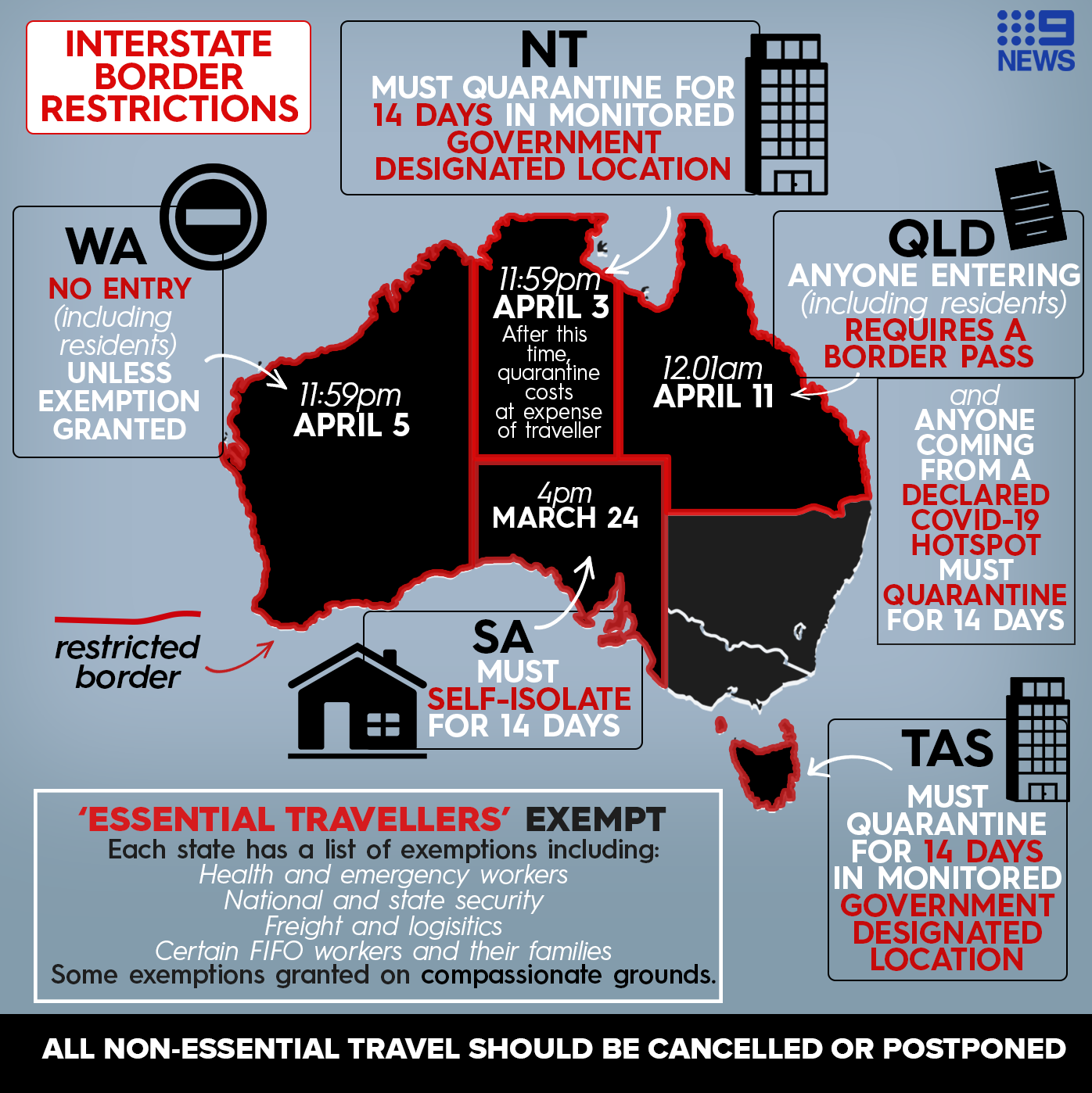 Covid is going to be with us for a while, she said. Some restrictions are made by the provincial health officer (pho) under the public health act and others are made under the emergency program act (epa). Australia now fighting covid on four fronts with cases in wa, nsw, qld and nt qld and wa brought in restrictions after recording three cases between them australia is battling a covid outbreak on four fronts with cases now in queensland , western. Find out what you can and cannot do. Entry ban or entry restrictions for passengers who have been in specific countries, or suspension of flights from specific countries, or quarantine policy (6 countries).